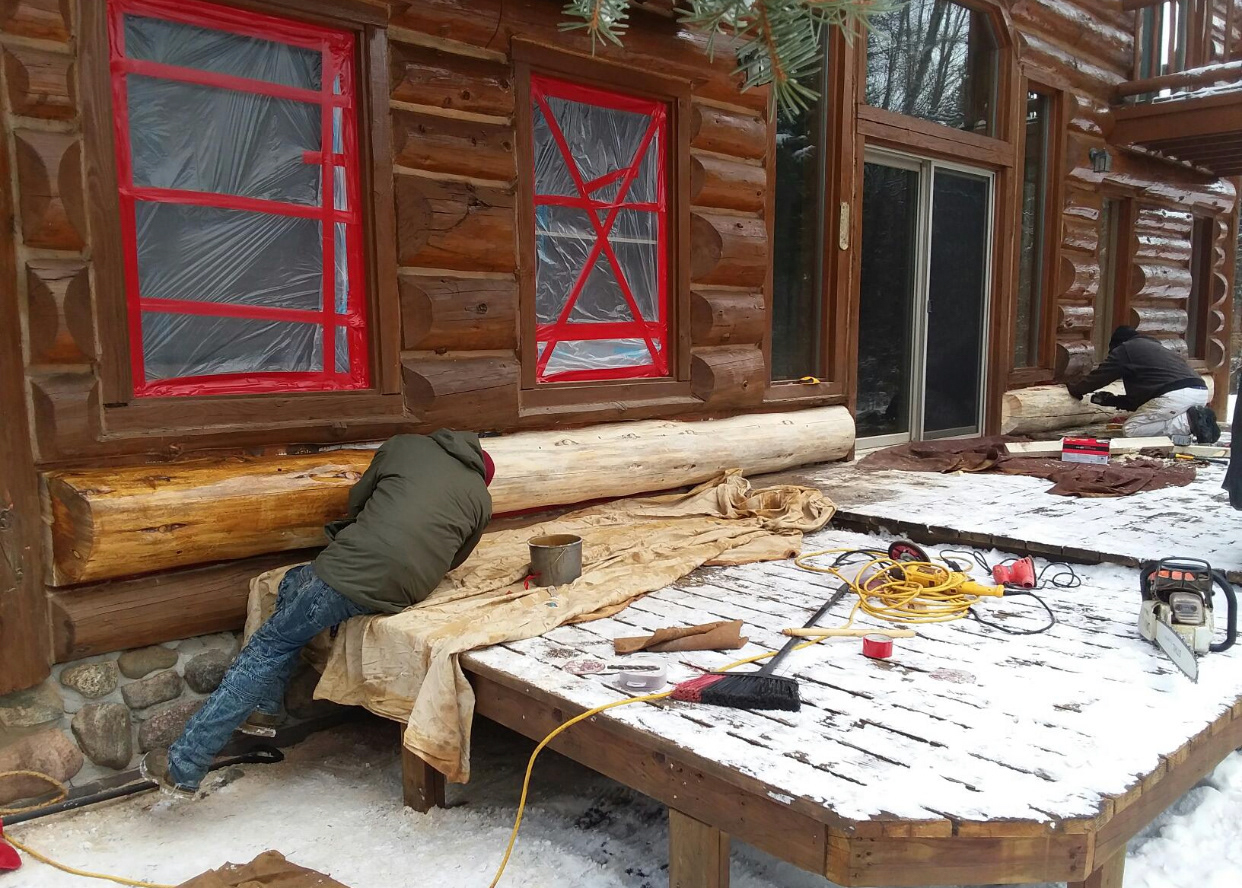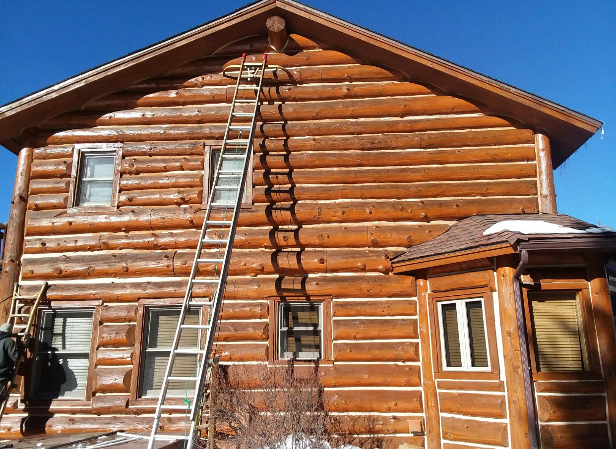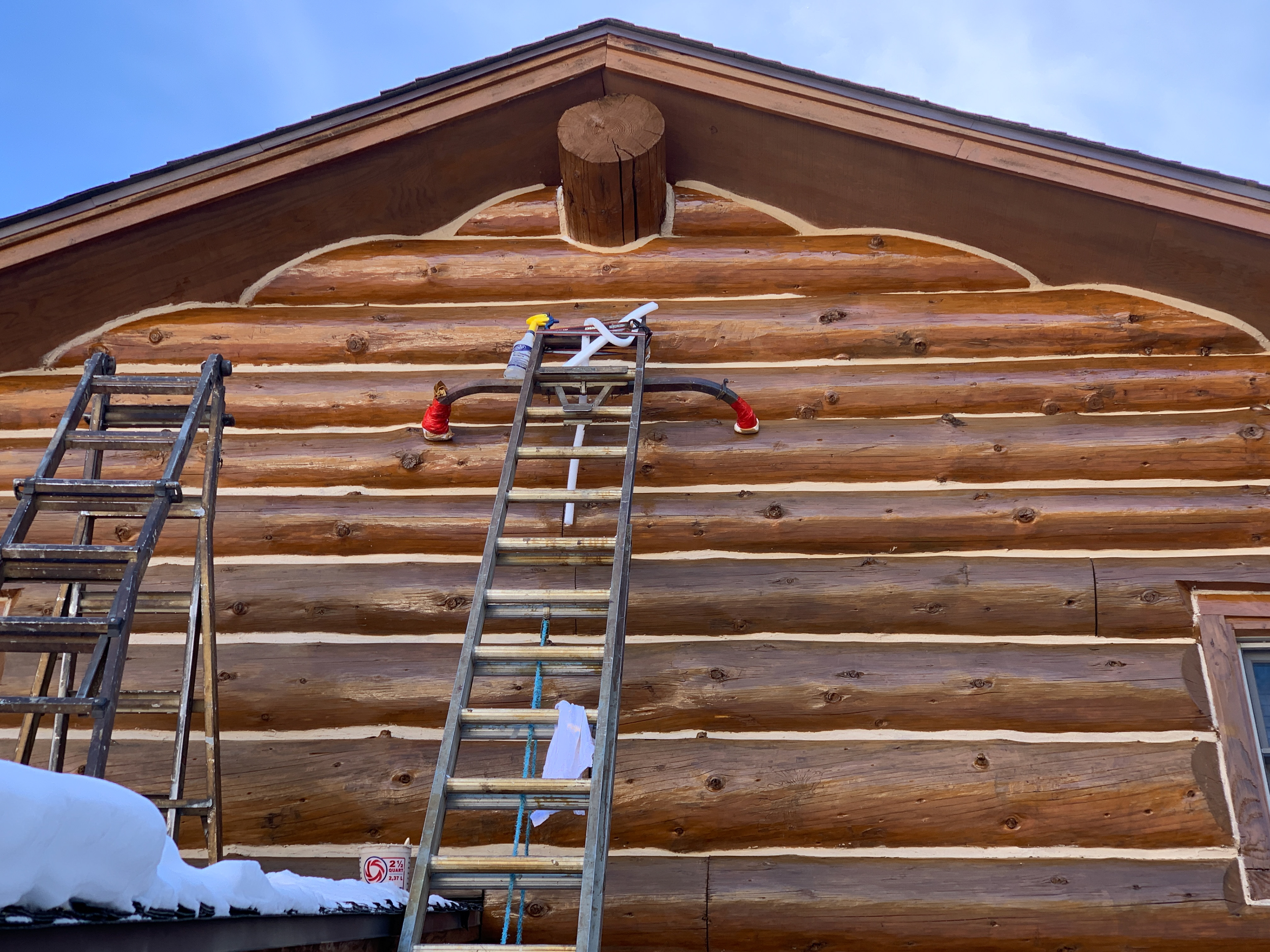 Custom Log Home Reatoration project in Silverthorne, Colorado by the Log Home Finishing Log doctors.
