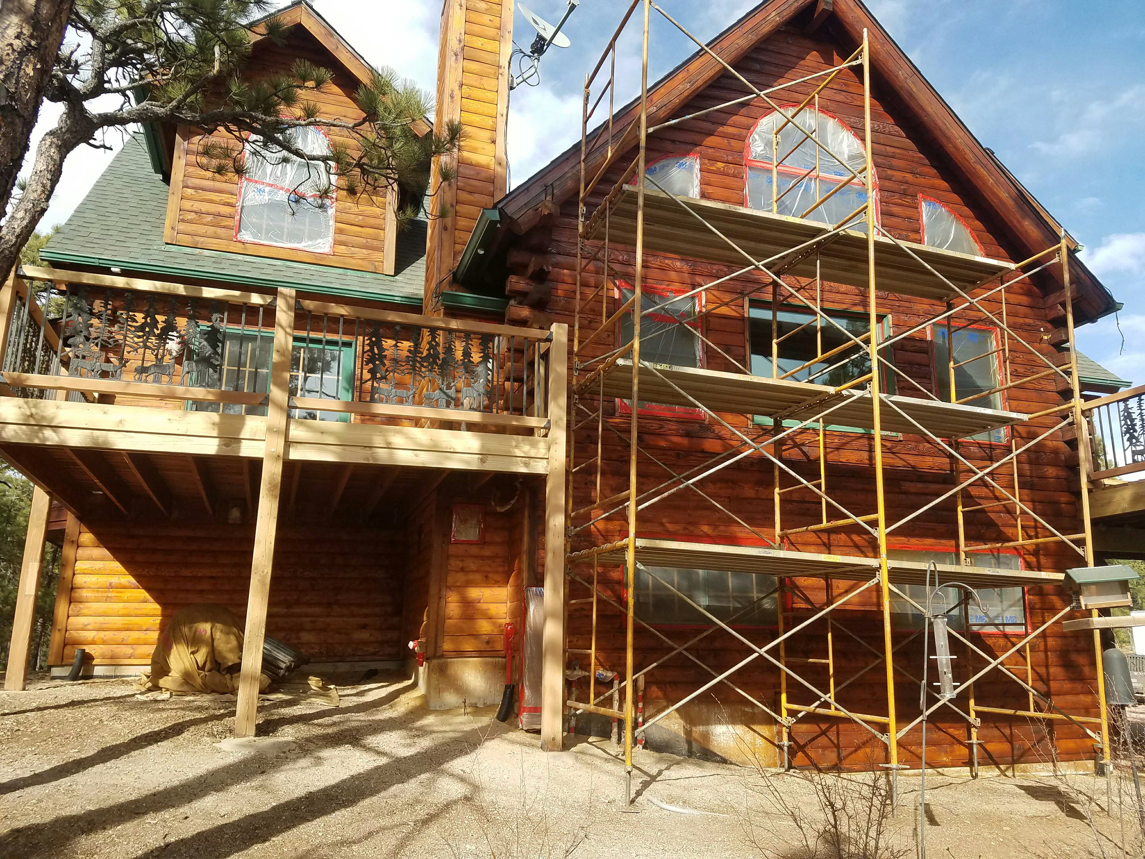 Log Home Finishing Colorado. Repairing and sealing log home cabins.