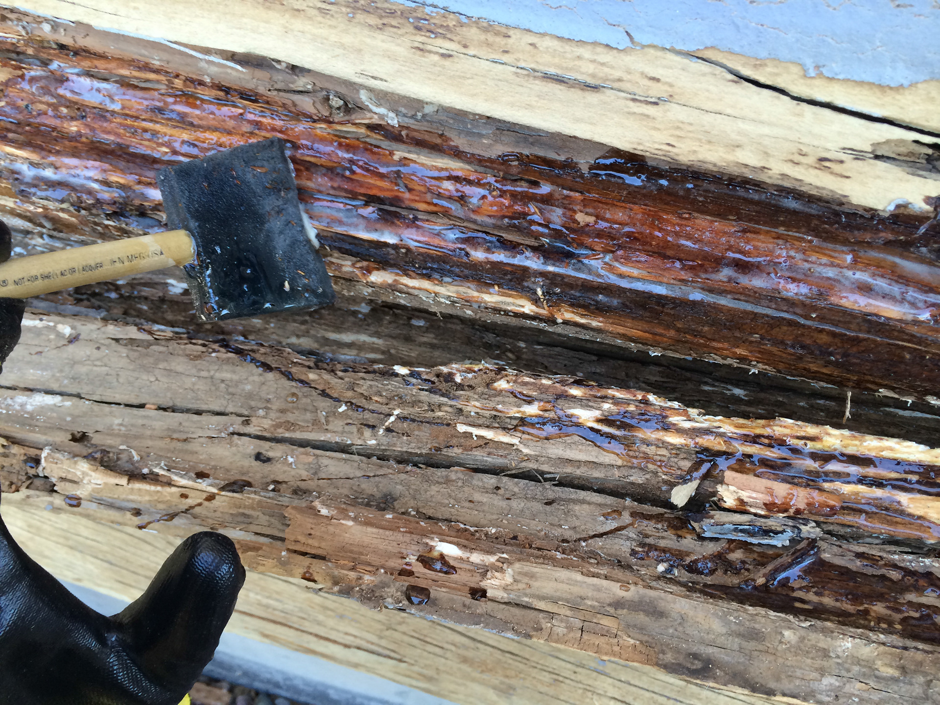 repairing a rotten log with Abatron epox log repair epoxy on log home cabin. This log home maintenance project is in Fort Collins, Northern Colorado.