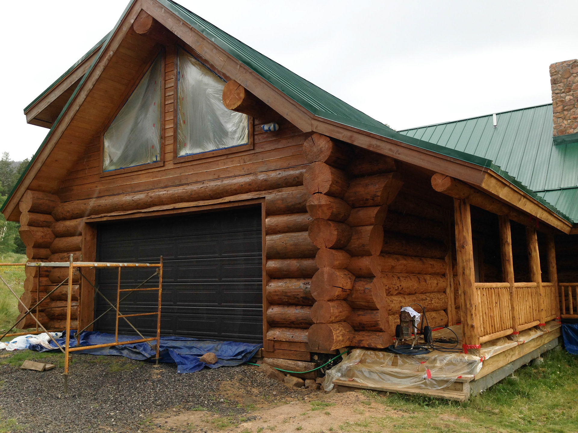 Log home maintenance and restoration completed by Colorado log home finishing, a Summit County and Park County log maintnenance and cabin specialist.