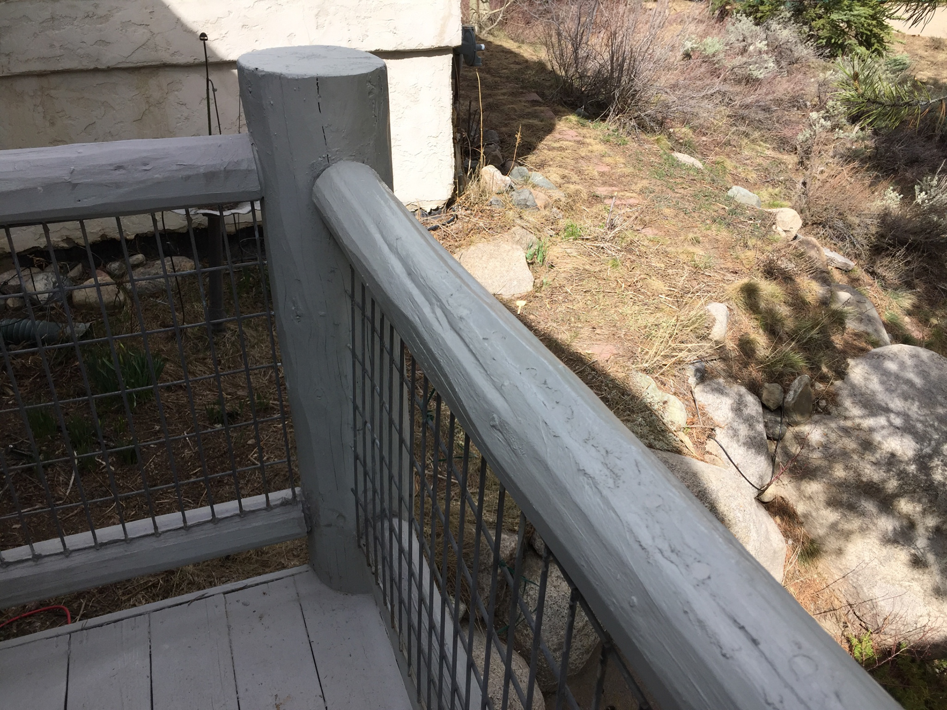 Installing and repairing log railings in Breckenridge and Keystone Colorado. Log Rails on a log home don't last forever if not properly maintained with interval staining and caulking. Log Home Finishing can repair log railing in many situations with Abatron Liquid Wood and Wood Epoxy resin. In other cases we my determine that removing the existing log rails and ordering new log railings and installing is the best option.