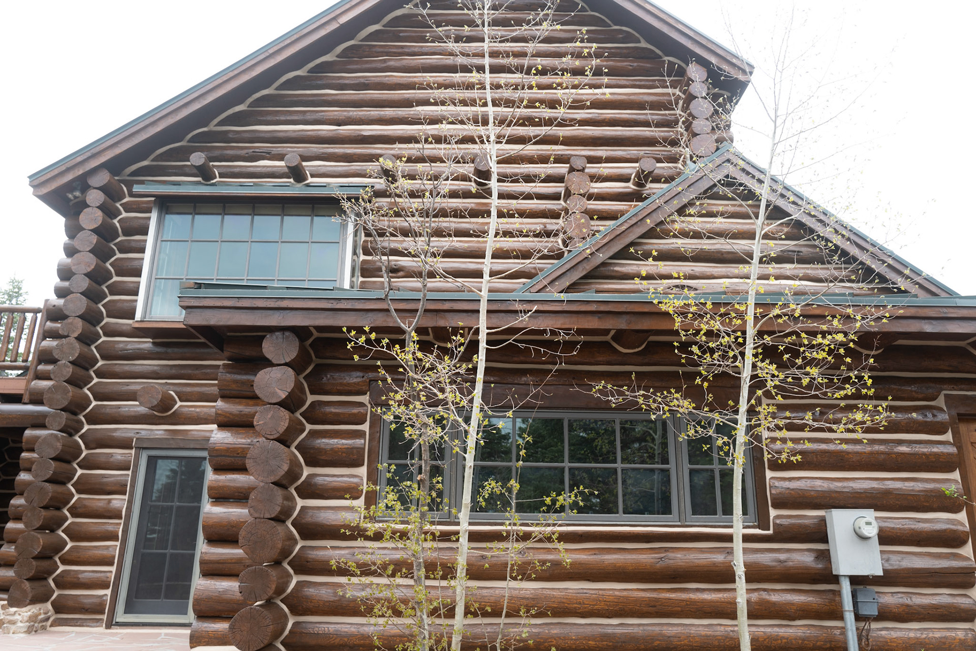 Rye, Colorado Log Home Restoration Southern Colorado. Log Home was stripped of old finishes using media blasting. and sanding. Logs are coated with Sashco Transformation Log and Timber Browntone Dark stain. Chinking is Sashco Log Jam Buff.